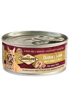 Kompletné superprémiové vlhké krmivo pre dospelé mačky. Zloženie: 35% kuracie mäso, kuracia pečeň, kuracie srdce, 20% jahňacie, 2% hrachová múka, 1% brusnice, 1% lignocelulóza, 0,1% ľanový olej. Analytické zložky: hrubý proteín 10,8%, obsah tuku 3 vláknina 0,4%, vlhkosť 79%, vápnik 0,25%, fosfor 0,2%, sodík 0,2%. Nutričné aditíva v 1 kg: vitamín A (3a672a) 1000 IU, vitamín D3 (3a671) 300 IU, vitamín E (3a700) 150 mg, vitamín B1 (3a821) 1 mg, taurín (3a370) 630 mg (3b106) 12 mg, jód (3b201) 1 mg, mangán (3b504) 2,5 mg, zinok (3b606) 15 mg. Kŕmny návod: Odporúčaná denná dávka je uvedená v kŕmnej tabuľke.