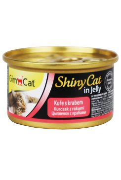 Konzerva obsahuje kombináciu kuracieho mäsa a malých kúskov z kraba.