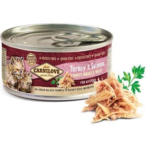 Kompletné krmivo pre mačiatka s morkou a lososom.
