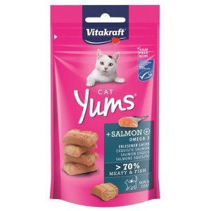 Mäkké tyčinky YummiesYummies sú bohaté na bielkoviny a obsahujú najmenej 85% mäsa/ryb.Yummies neobsahujú obilniny, aby vyhoveli čisto mäsitej mačacej strave.Doplnené o základné prvky mačacieho jedálnička: Taurín, vitamíny A, D3 a E.Deliteľné Taurin schopné syntetizovať v dostatočnom množstve. Táto aminokyselina zaisťuje správne fungovanie svojho organizmu.