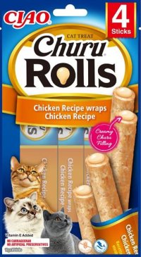 Polomäkké kuracie tyčinky plnené Churu kuracím mäsovým pyré pre mačky.