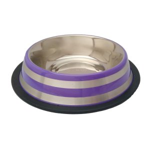 Nerezová miska stabilná s gumovým lemom - zabraňuje nežiaducemu pohybu po podlahe.Objem misky: 0,25 lt (vhodná pre šteňatá, mačky)Priemer misky: 12 cmPriemer spodného okraja: 16 cmVýška: 4 cmFarba: fialová …