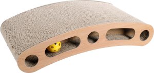 Podložka s kartónovým škrabadlom, guličkovou dráhou a catnipom.