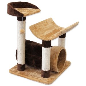 Odpočívadlo s plyšovým poťahom, búdkou a poschodiami na odpočinok.
