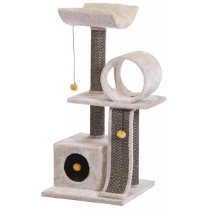 Pohodlný strom na škrabanie s pelechom a polstrovanou vyhliadkou.