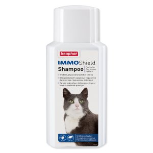 Beaphar IMMO Shield šampón pre mačky je založený na látke dimetikón (silikónový olej), ktorý imobilizuje blchy, kliešte a všetok ostatný hmyz, najmä komáre, roztoče, vši a všenky fyzikálnym spôsobom. Dimetikón vytvára na hmyze povrchovú vrstvu, ktorá inhibuje ich kĺby a pôsobí ako účinná pasca. Dimetikón pôsobí na všetky vývojové štádiá bĺch.