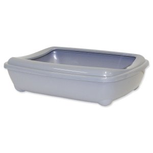 Priestranná otvorená toaleta pre mačky so zosilneným okrajom, ktorý zabraňuje vysypávaniu podstielky. Rozmery: 390x580x190 mm