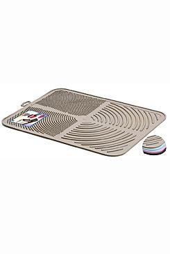 Plastová, vodotesná podložka, prispieva k zaisteniu poriadku okolo mačacej toalety.