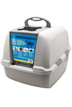 Uzavreté, priestranné wc pre mačky s horným prielezom z kvalitného odolného plastu.