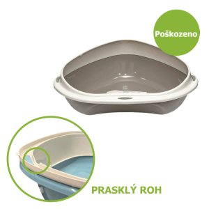Priestranná otvorená toaleta pre mačky do rohu miestnosti.