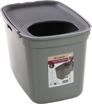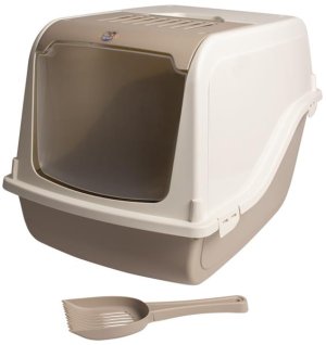 Uzavreté, priestranné wc pre mačky s horným prielezom z kvalitného odolného plastu.
