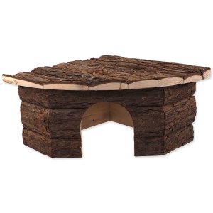 Rohový domček z mäkkého dreva s rovnou strechou pre morčatá, potkany a iné drobné hlodavce.