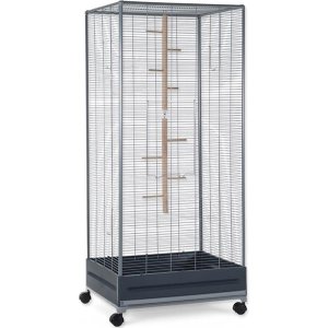 Drôtená klietka v čiernej farbe s dvoma vchodmi pre malé zvieratá s rukoväťou.