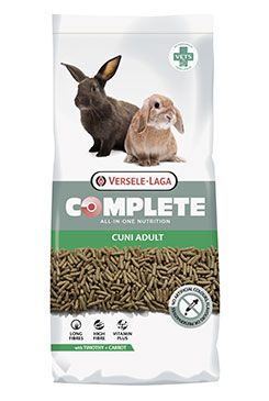 Extrudované pelety, bohaté na vlákninu, všetko v jednom pre dospelých (zakrpatené) králiky. Versele-Laga Complete Cuni Adult poskytuje výživu bez zbytočných starostí.