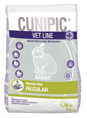 Kompletné krmivo pre zakrpatené králiky. Zloženie: obilniny, vedľajšie produkty rastlinného pôvodu, zelenina, cukrová trstinová melasa, oleje a tuky, semená.Akostné znaky: proteíny 13%, vlhkosť 10%, oleje a tuky 3%, vláknina 13,5%, popoloviny 3%, vápnik 1% vitamín D3 781 IU/kg, vitamín E (alfatokoferol) 26,7 mg/kg, vitamín C 51mg/kg, vitamín B1 4 mg/kg, vitamín B2 5 mg/kg, vitamín B6 2,9 mg/kg, vitamín B12 9,4 mcg/kg, niacín 20,5 mg/kg, 182 IU/kg, kyselina listová 2,6 mg/kg, cholín 104 mg/kg, meď 6,9 mg/kg. Kŕmny návod: pre 1 zviera podávajte denne približne 45 -55 g (4 polievkové lyžice) krmiva plus seno.