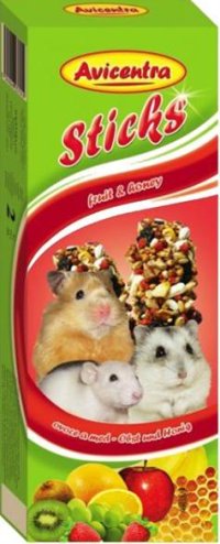 Doplnkové krmivo pre morčatá, tyčinky s medom, zeleninou a citrónom plné minerálov a vitamínov. Trikrát pečená s drievkom vo vnútri. S praktickým držiakom na pripevnenie v klietke. Zloženie: obilniny, citrusy-citrón, pomaranč (15%), zelenina, med.Akostné znaky: 14% proteín, 13% tuk, 3,2% vláknina, 5% popol, 12,5% vlhkosť, 52,3% uhľohydráty, 1,2% vápnik, Skladujte v suchu a chlade.
