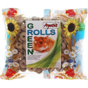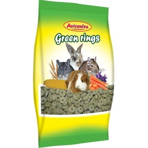 Pochúťka pre hlodavce v tvare extrudovaných kukuričných koliesok.