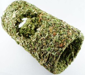 Bylinková bezobilná prírodná pochúťka pre hlodavce v tvare tunela na rolke s koreňom púpavy, topinamburom a slamienkou.