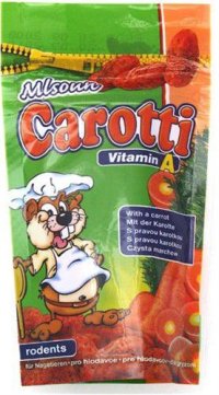 Doplnkové krmivo pre hlodavce vo forme mrkvičiek s pravou mrkvou a vitamínom A.