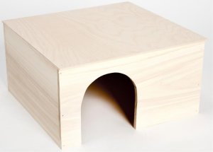 Priestranný domček z kvalitnej preglejky, bezpečnej pre drobné cicavce (preglejka s certifikátom na výrobu detského nábytku).