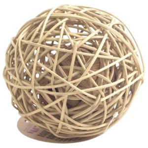 Pletená ratanová guľa, vo vnútri s guličkou z listov vodného hyacintu.