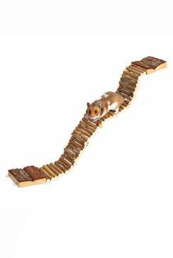 Zavesiteľný drevený mostík do klietky pre hlodavce. ohybnéna zavesenie (na oboch koncoch)vyrobené z ihličnatého dreva bez živicových kanálikov, pretože živica môže byť pre niektoré zvieratá jedovatádrovo je pred ďalším spracovaním tiež dôkladne vysušenélepidlo je netoxické a skladá sa zo zmesi kaučuku alebo celulózymateriál: drevo