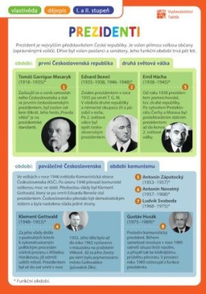 Prehľadová tabuľka: Prezidenti pre 1. stupeň základnej školy, v jednej tabuľke, ktorá sa zmestí do každého zošita alebo notýska.
