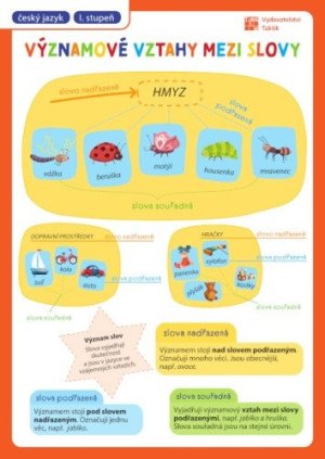 Prehľadová tabuľka: Významové vzťahy medzi slovami, synonymá, antonymá, homonymá pre 1. stupeň základnej školy, v jednej tabuľke, ktorá sa zmestí do každého zošita či notýska.