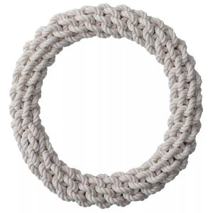 Veľké bavlnené preťahovadlo pre psy veľkých plemien v tvare kruhu je spletené z pevných prírodných povrázkov.