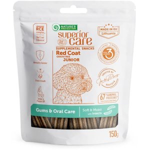 Nature's Protection Superior Care Red Coat Junior Gums & Oral Care je výživový doplnok s hmyzom vyvinutý špeciálne pre mladých psov všetkých plemien.