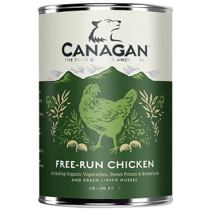 Šťavnatá mäsová konzerva Canagan Free-Run Chicken.Kuracie mäso z voľného výbehu v receptúre bez obilnín - kompletné krmivo pre dospelých psov.