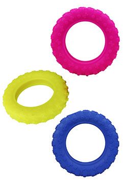 Netoxická hračka v tvare pneumatiky je vyrobená zo špeciálneho materiálu, ktorý je až o 30% ľahší ako klasická guma.