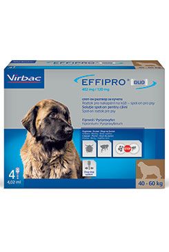 Spot-on proti blchám, kliešťom a všenkám pre psy 40-60 kg staršie ako 8 týždňov nad 2 kg Možno použiť aj na podporu terapie alergie na blšie …