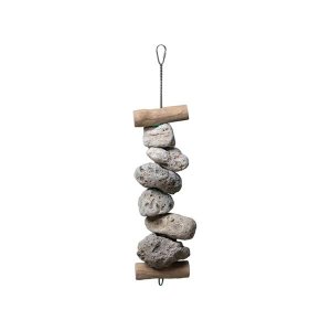 Závesná hračka pre stredné a veľké papagáje je vyrobená z lávového kameňa a dreva kávovníka.