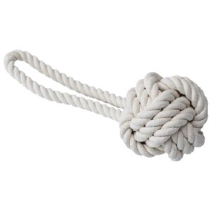 Bavlnené preťahovadlo pre psov spletené z pevných prírodných povrázkov do tvaru lopty je zakončené okom pre lepší úchop pri …