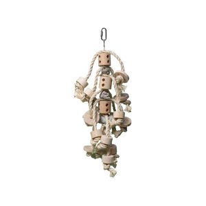 Závesná hračka z borovicového dreva, lávového kameňa a sisalového povrazu je vhodná pre malé až stredne veľké papagáje.