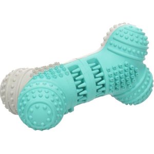 Gumová hračka pre psov v tvare činky pri hryzení masíruje ďasná a pomáha obmedzovať tvorbu zubného povlaku, čím prispieva k prirodzenej…