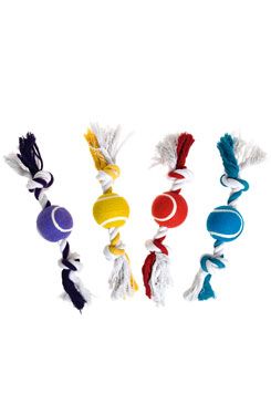 Hračka pre psov z recyklovaného materiálu, tenisová loptička na lane.