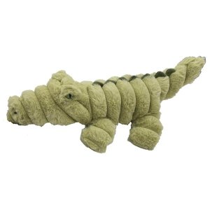 Hračka v tvare krokodíla pre psov malých plemien je vyrobená z mäkkého a odolného plyšu.