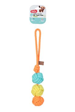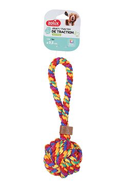Pletená povrazová hračka pre psov, vhodná na hádzanie, žuvanie a preťahovanie. Vyrobené z mäkkého povrazu, ktorý je pre psa príjemný na žuvanie. Štítok s logom z eko kože Žuvaním sa znižuje množstvo zubného plaku Pri hraní sa posilňuje puto so loptou lane. Štyri veľkosti: 6 cm, 29 cm, 18 cm, 42 cm.