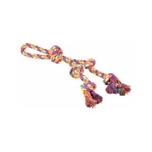 Odolné bavlnené preťahovadlo pre psov je spletené z pevných farebných povrázkov a má uzly pre lepší úchop pri hre.
