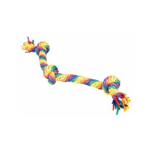 Hračka z pevného bavlneného lana s uzlovou loptičkou uprostred a dvoma menšími uzlami po stranách je skvelá na preťahovanie, aportovanie …