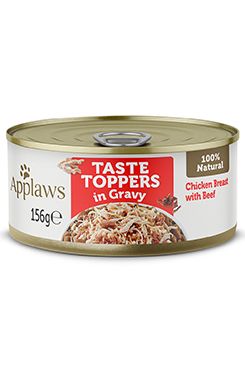 Konzerva kura s hovädzím mäsom v lahodnej omáčke z radu Taste Toppers ponúka doplnkové krmivo pre dospelých psov iba z prírodných surovín.