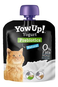 Doplnkové krmivo pre mačky.s prebiotikami bez laktózy a cukru0% pridaného tukuhmotnosť: 85 g Zloženie:mliečne výrobky 95,6 % (bez laktózy), kukuričný škrob, pektín 0,6 %, suchý oligofruktóz 0,5 %, arómy. 0,1 %, hrubá vláknina 1,0 %, hrubý popol 0,8 %, vlhkosť 87,6 %, vápnik 0,1 %, laktóza 0,1 %. Zaradením a pravidelným podávaním jogurtu YOWUP! zaistíme svojej mačke dostatočný prísun prebiotík a tak aj dlhodobo priaznivý stav črevnej mikroflóry, ktorý môže mať pozitívny dopad na ďalšie funkcie organizmu. Uchovajte v chlade a suchu, po otvorení v chladničke. PREBIOTIKA - keď človek konzumuje jogurt, prijíma aj baktérie, ktoré ho tvoria a ktoré sú stále živé.