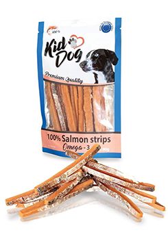 KIDDOG doplnkové krmivo, mäsová pochúťka pre psov, 100% losos v prúžku.