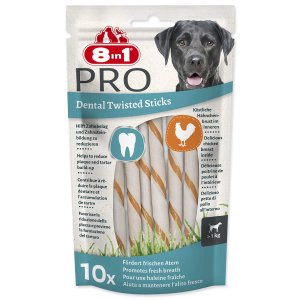 Žuvacie tyčinky 8in1 Delights Twist sú krútené a vďaka svojej veľkosti vyhovujú malým a stredným psom.