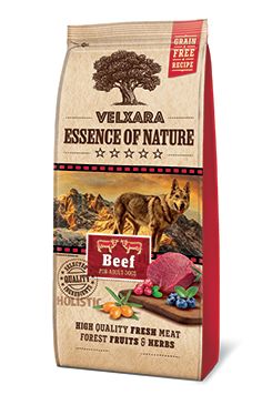 Kompletné holistické krmivo pre dospelých psov - celostné granule pre psov extrémne bohaté na čerstvé a dehydrované hovädzie (55%) s červenou šošovkou.
