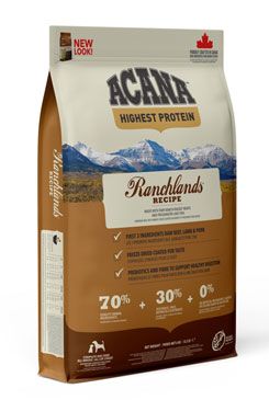 ACANA RANCHLANDS OBSAHUJE ANGUSKÉ HOVÄDZIE, VOĽNE CHOVANÉ JAHŇATÁ, BIZONY A YORKSHIRSKÉ BRAVČOVÉ, VŠETKO DODÁVANÉ ČERSTVÉ ALEBO SUROVÉ Z NAŠEHO REGIÓNU V ODDIEL CELEJ KORISTI, ČO DÔLEŽŠIE KORISTY, ČO DÔLEŽŠIE.