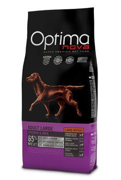 Prírodné superprémiové krmivo pre dospelých psov veľkých plemien.OPTIMAnova Dog Adult Large Chicken & Rice zložené z kvalitných bielkovín a ľahko stráviteľných sacharidov v kombinácii s prospešnými tukmi.