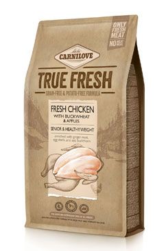 Carnilove True Fresh CHICKEN Senior & Healthy WeightOBOHATENÉ O KOREŇ ZÁZVORU, VAJEČNÉ ŠKRUPÍKY A RAKYTNÍK REŠETLIAKOVÝReceptúra obsahuje vysoký podiel čerstvého kuracieho z fariem a lokálnych zdrojov.